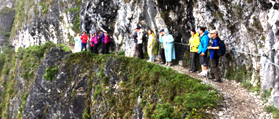 此次去花蓮的錐麓古道登山,由於沿途有不少的陡坡、險峻的斷崖、上下不規律的石階,加上最近長期下雨,有一些路段溼滑必需用手拉繩子的方式才能行走。到了下山的時候,有位山友,出現落後且面露難色的表情,因為身處偏鄉古道,因而大家也不曉得該如何協助她。